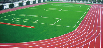 綠拓混合型塑膠跑道主要有兩層:1.混合漿料層,主要由漿料和橡膠顆?;旌隙?。2.面膠層,主要是EPDM和噴涂漿料。